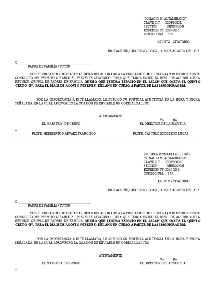 REUNIN GRUPAL DE PADRES DE FAMILIA, MISMO QUE TENDR ESPACIO EN EL SALN QUE OCUPA EL QUINTO
