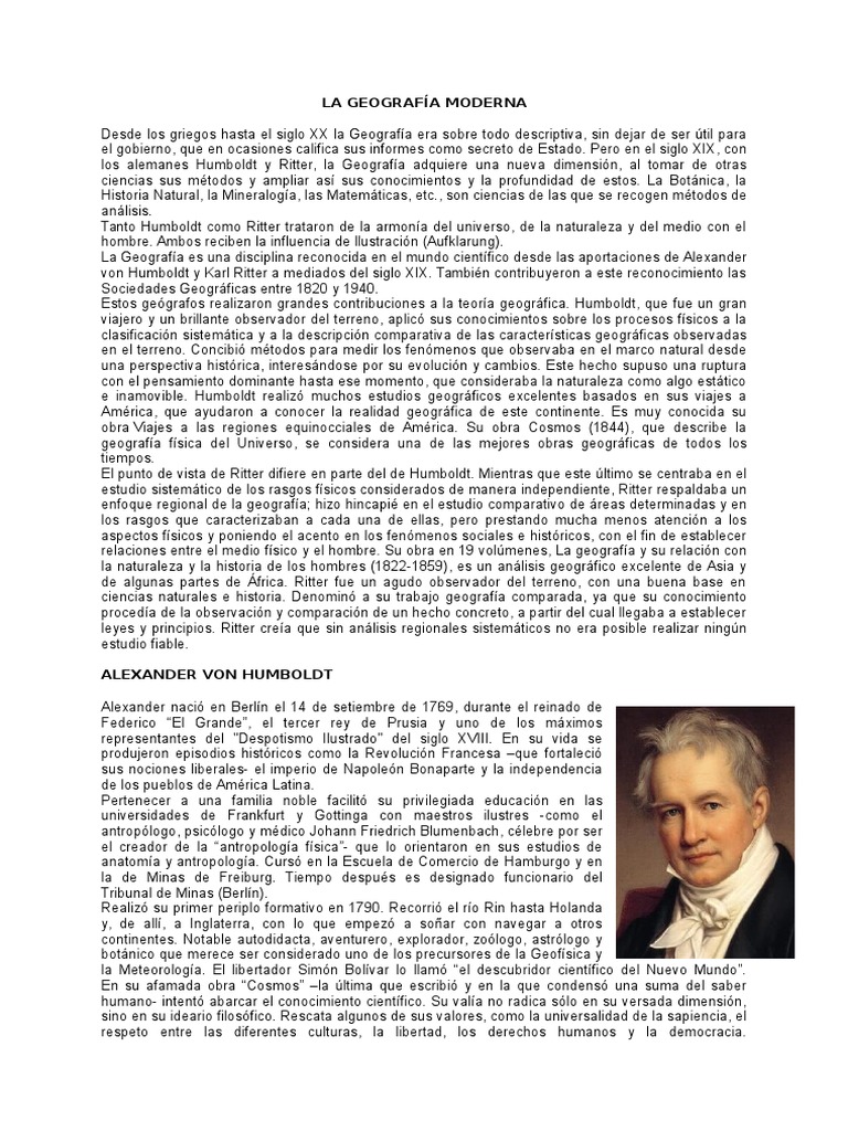 Estos gegrafos realizaron grandes contribuciones a la teora geogrfica. Humboldt, que fue un gran
