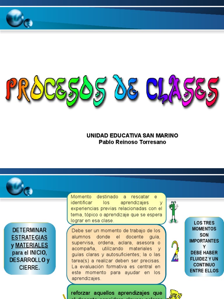 finalizar la clase puedan compartir lo que aprendieron; y, el docente