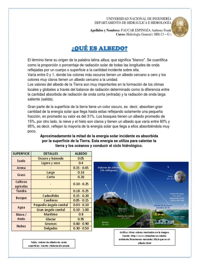 15%, por otro lado, la nieve y el hielo son claros y tienen un albedo que vara entre 80% y