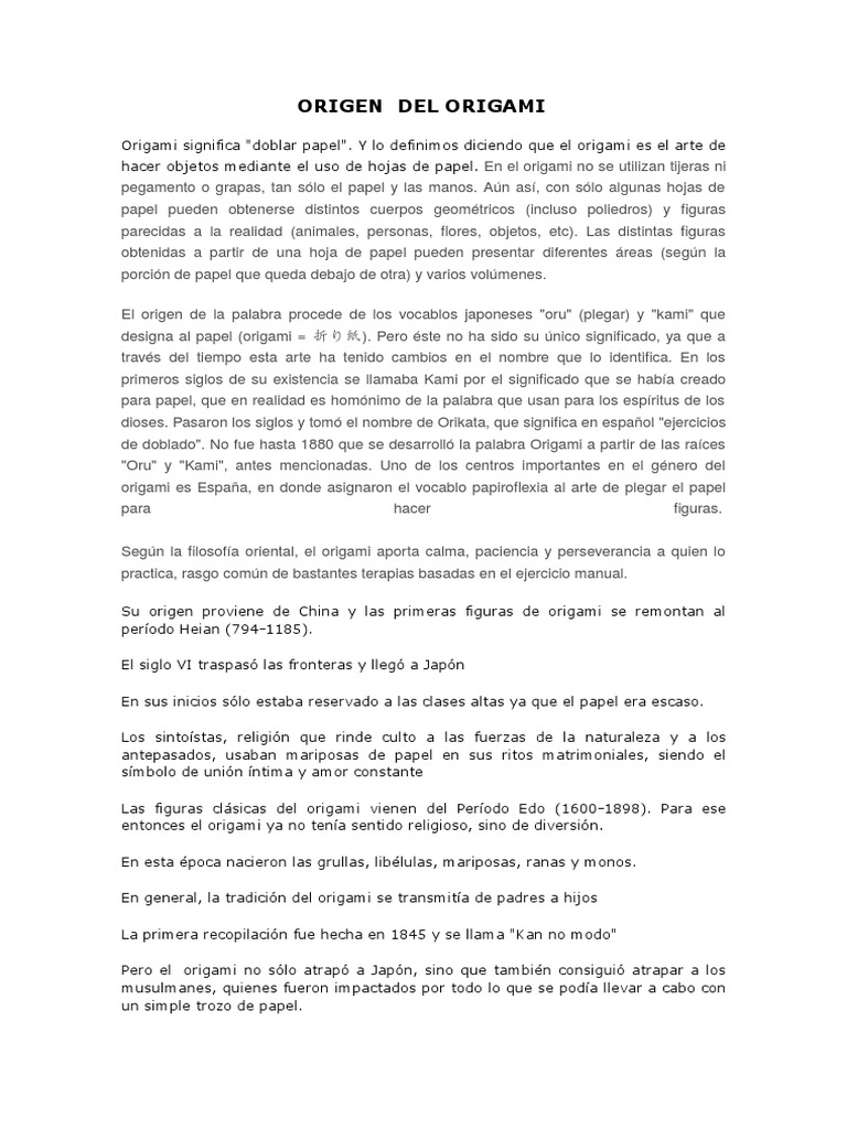 de doblado". No fue hasta 1880 que se desarroll la palabra Origami a partir de las races