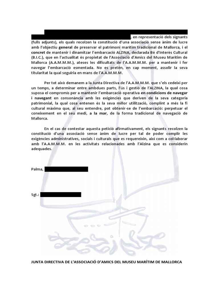 Per tot aix demanem a la Junta Directiva de lA.A.M.M.M. que sels cedeixi per