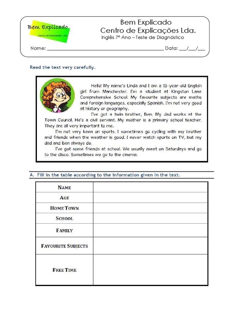 Ingls 7 Ano Teste de Diagnstico