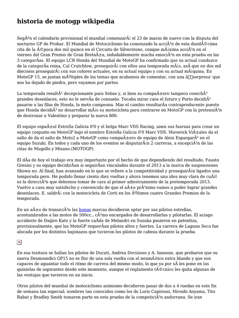 de MotoGP desde el ao pasado hoy da en el puesto veinte. Ha ido remontando posiciones y ha