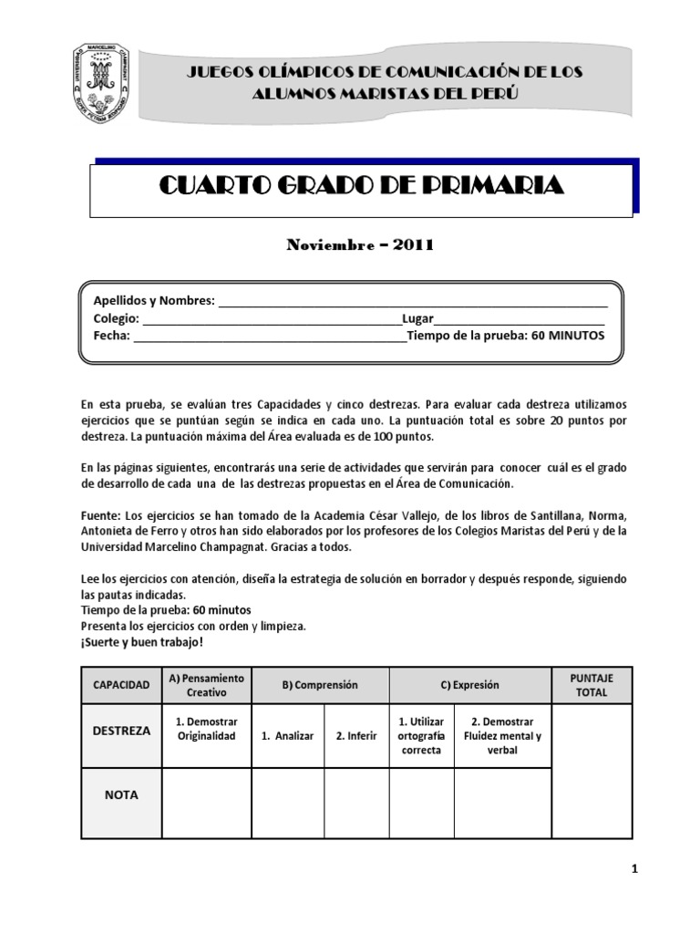 Fecha: ________________________________________Tiempo de la prueba: 60 MINUTOS