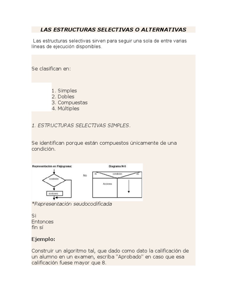 1. ESTRUCTURAS SELECTIVAS SIMPLES.