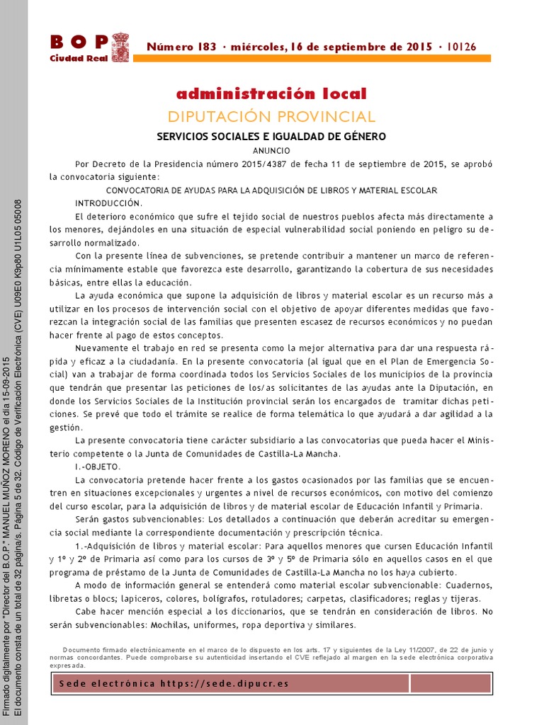 Firmado digitalmente por "Director del B.O.P." MANUEL MUOZ MORENO el da 15-09-2015