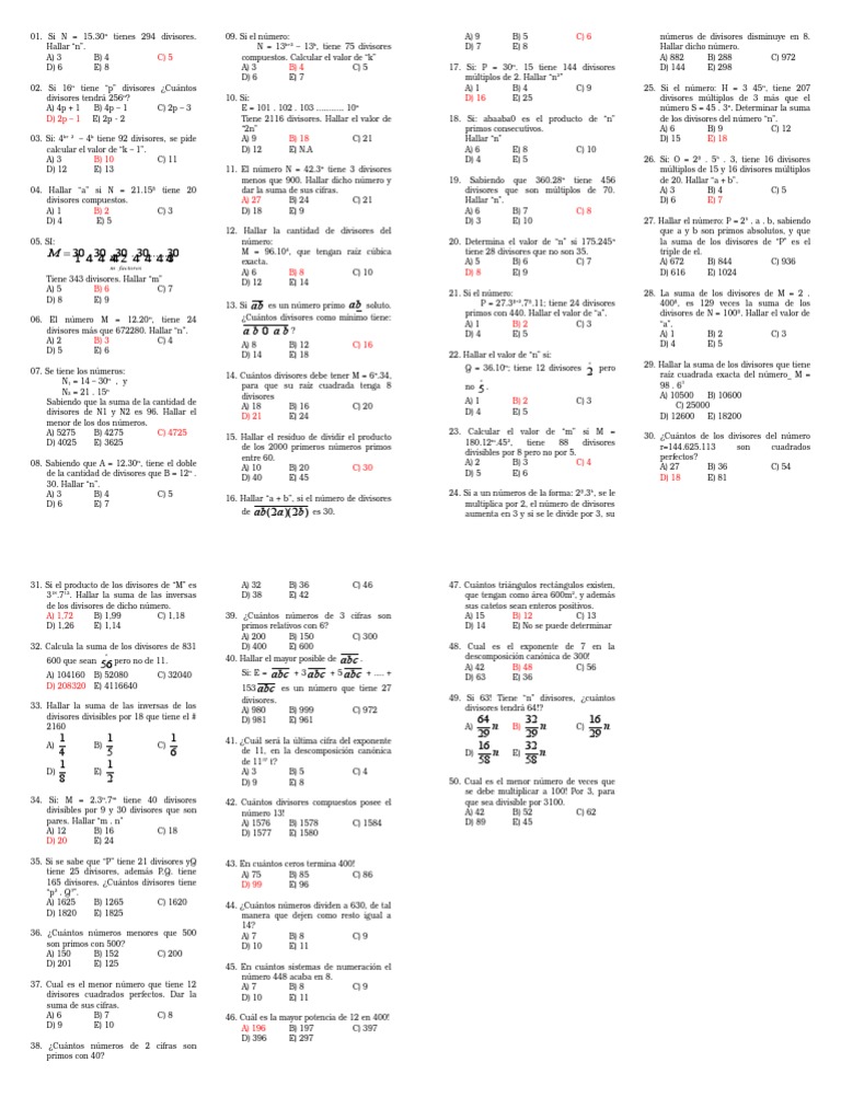 49. Si 63! Tiene n divisores, cuntos