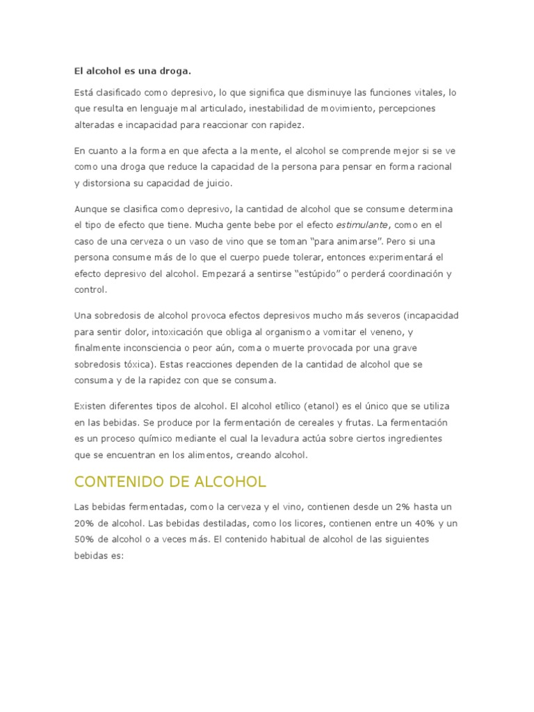 Una sobredosis de alcohol provoca efectos depresivos mucho ms severos (incapacidad