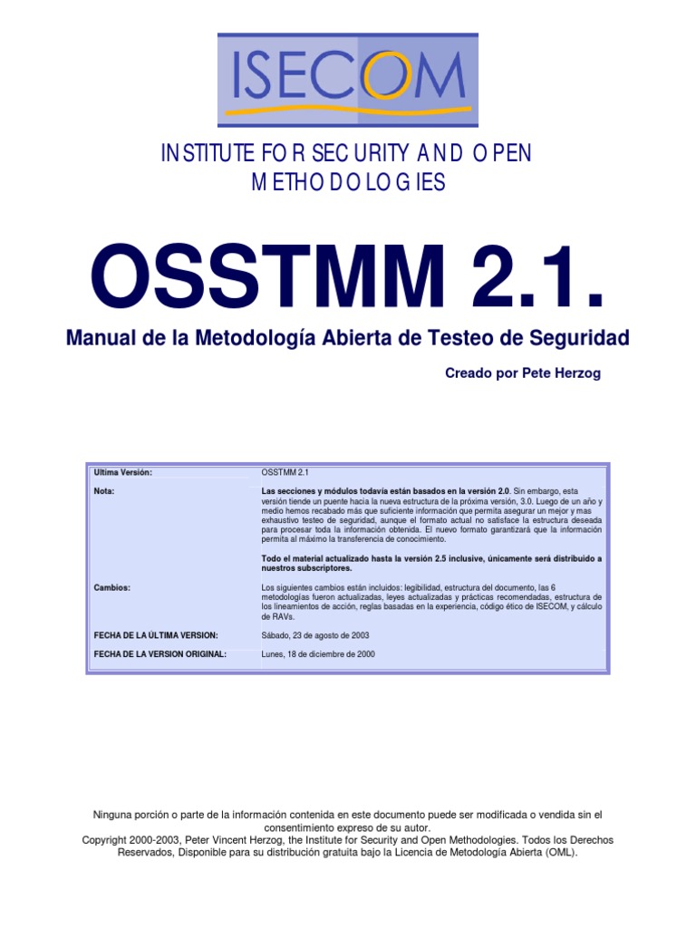 Copyright 2000-2003, Peter Vincent Herzog, the Institute for Security and Open Methodologies. Todos los Derechos