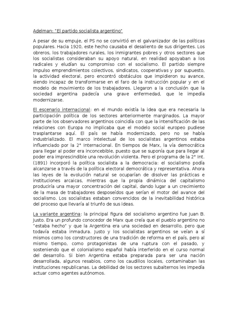 Adelman: El partido socialista argentino