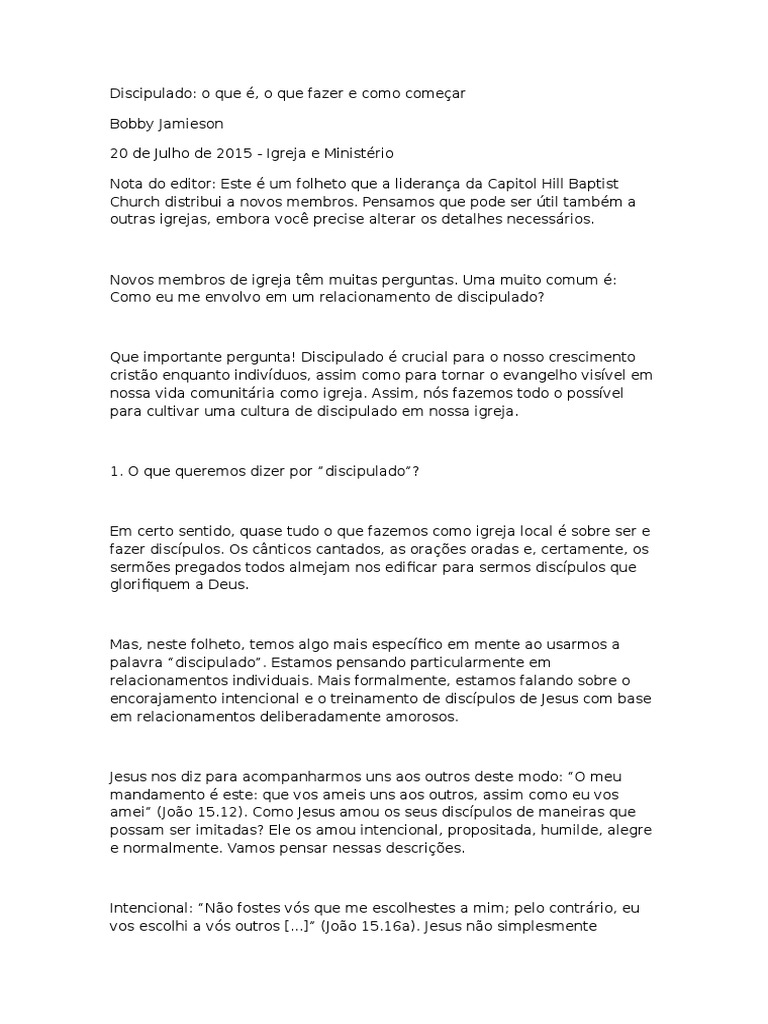 de domingo, s 9h30min. Ou baixe a apostila da aula sobre discipulado em