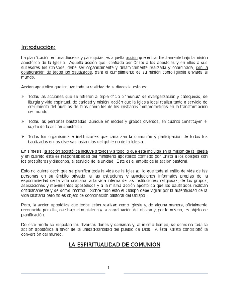 La planificacin en una dicesis y parroquias, es aquella accin que entra directamente bajo la misin