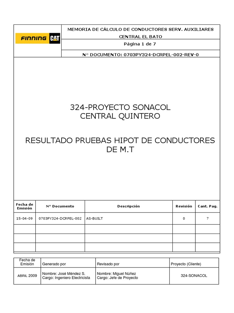 N DOCUMENTO: 0703PY324-DCRPEL-002-REV-0