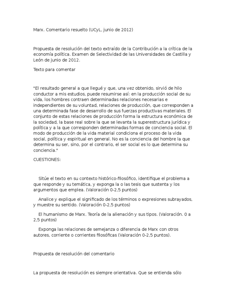 Propuesta de resolucin del texto extrado de la Contribucin a la crtica de la