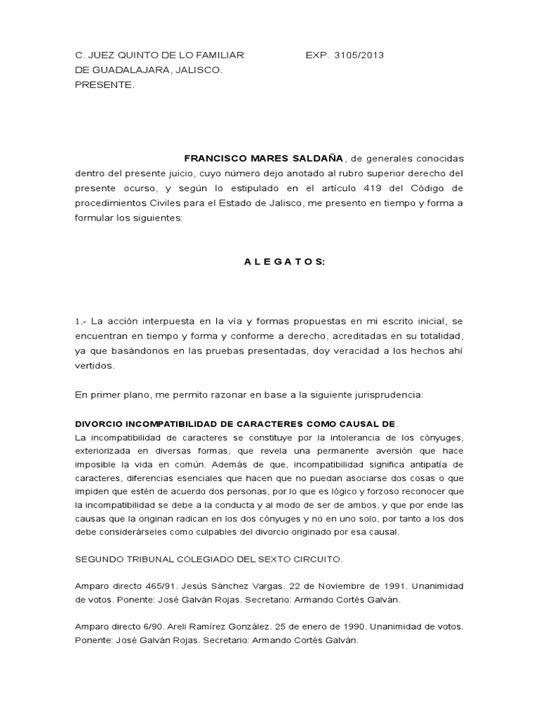 procedimientos Civiles para el Estado de Jalisco, me presento en tiempo y forma a