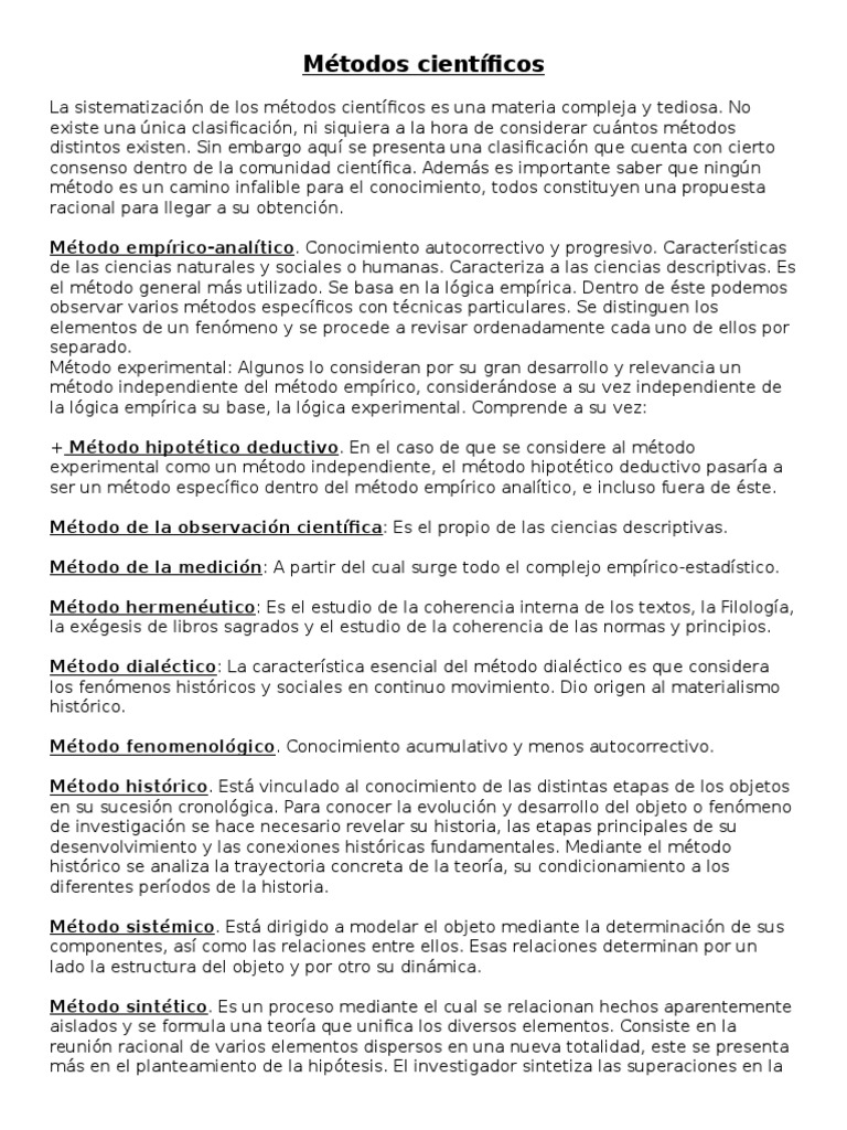 La sistematizacin de los mtodos cientficos es una materia compleja y tediosa. No