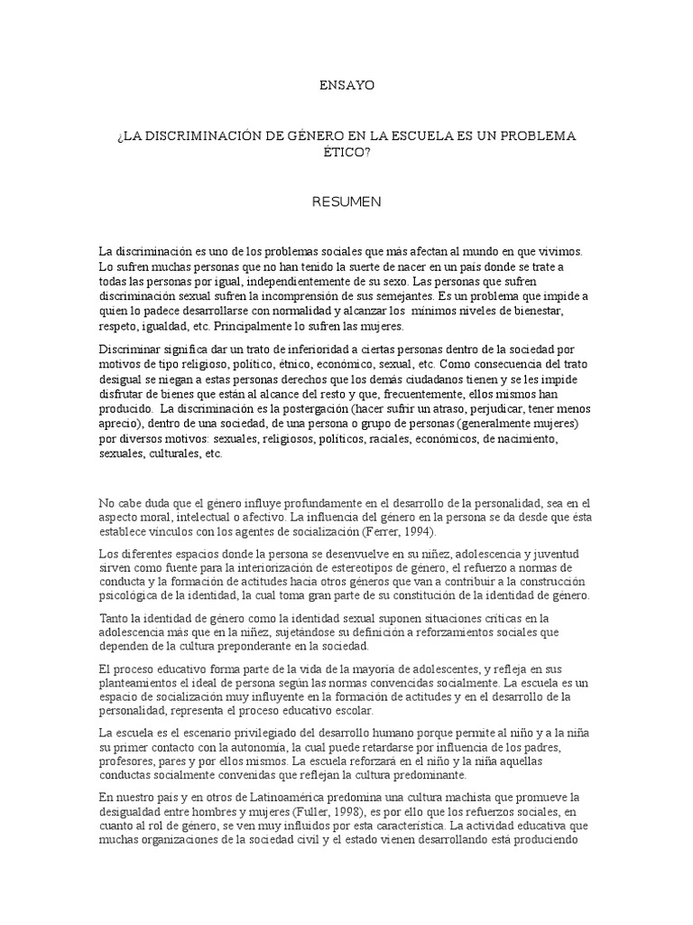 Por todo lo anterior el problema de discriminacin de gnero es un problema tico.