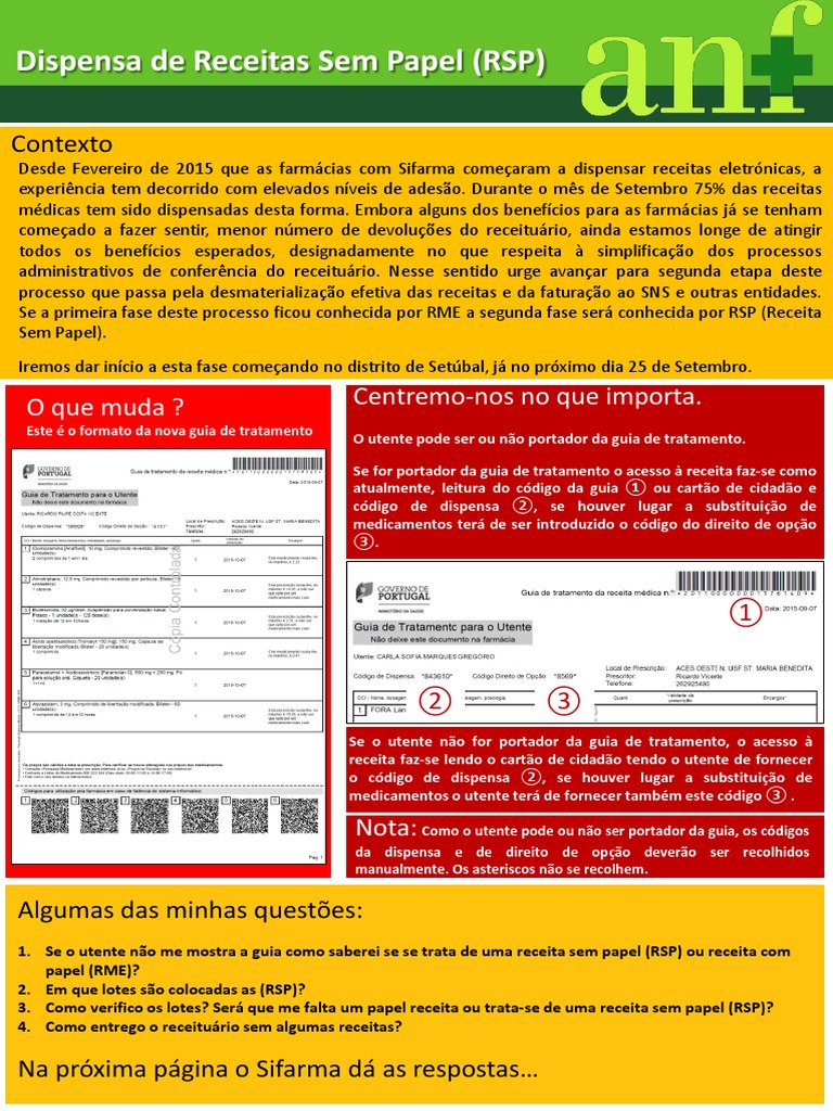 Todas as farmcias do distrito de Setbal com Sifarma a partir do dia 25 inclusive esto em condies de dispensar RSP