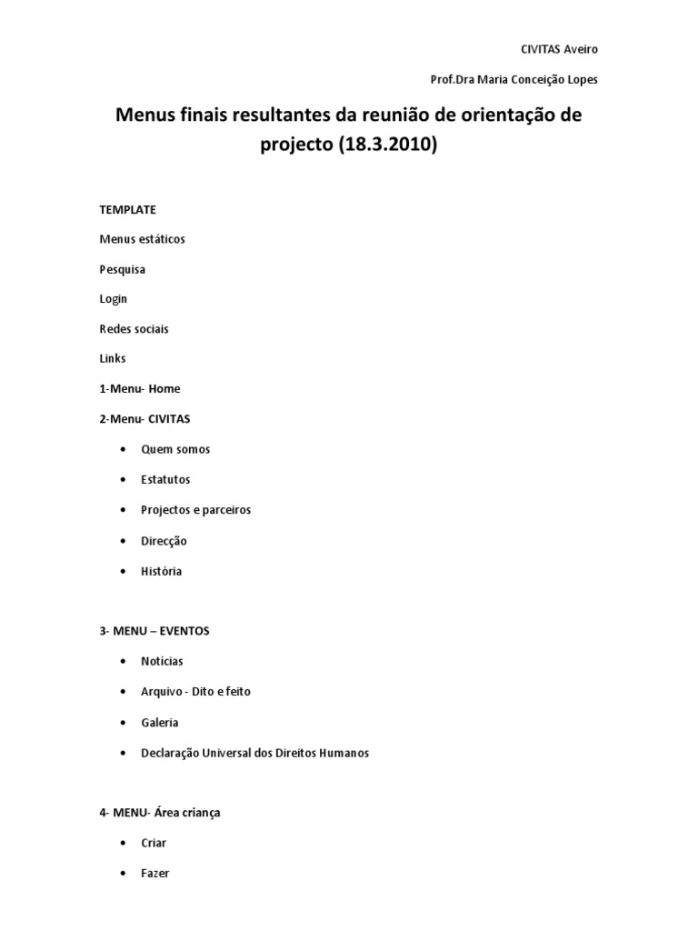 Menus finais resultantes da reunião de orientação de