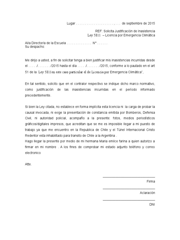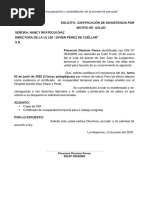Me dirijo a usted, a fin de solicitar tenga a bien justificar mis inasistencias incurridas desde