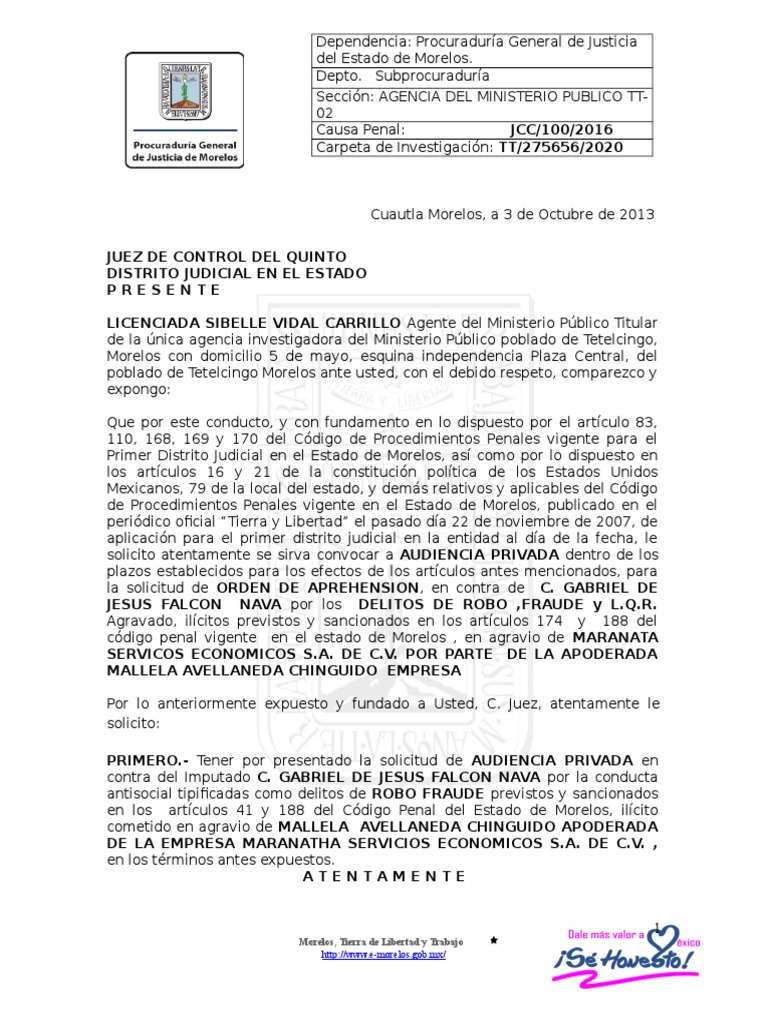 cdigo penal vigente en el estado de Morelos , en agravio de MARANATA