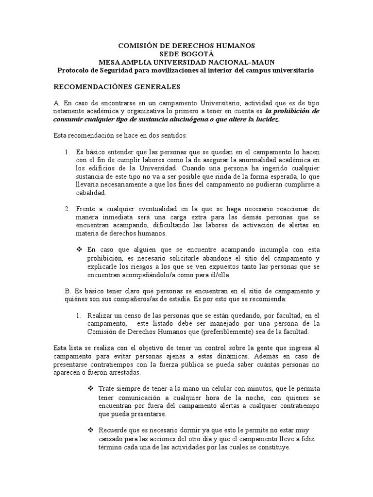 1. Evite en lo posible confrontaciones violentas con la Fuerza Pblica.