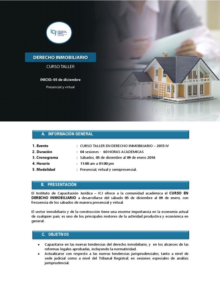 DERECHO INMOBILIARIO a desarrollarse del sbado 05 de diciembre al 09 de enero, con