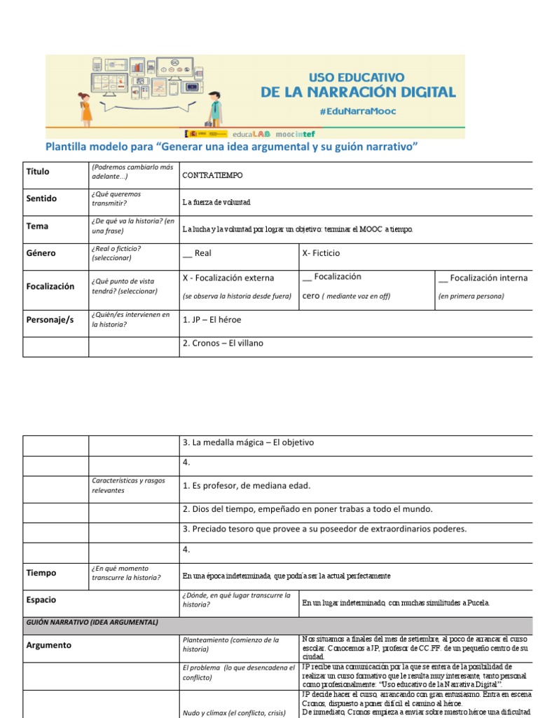 Plantilla modelo para generar una idea argumental y guin narrativo. #EduNarraMooc.