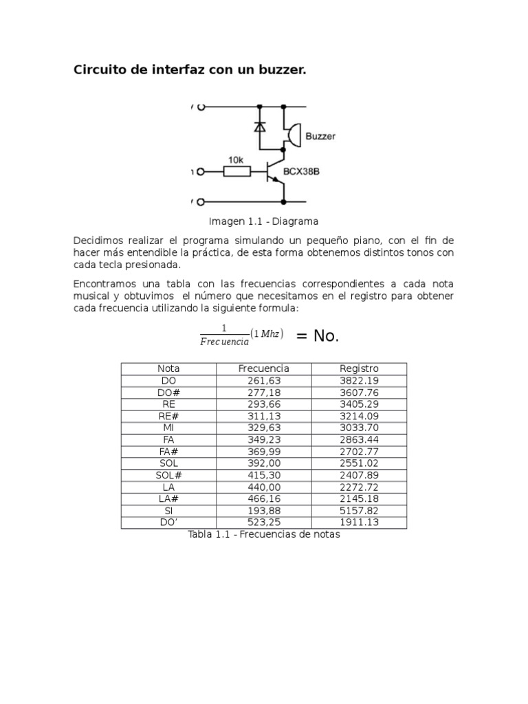 Encontramos una tabla con las frecuencias correspondientes a cada nota