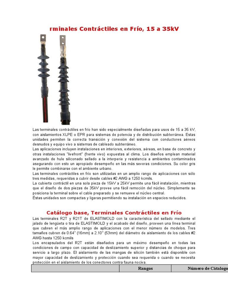 Las terminales contrctiles en fro han sido especialmente diseadas para usos de 15 a 35 kV,
