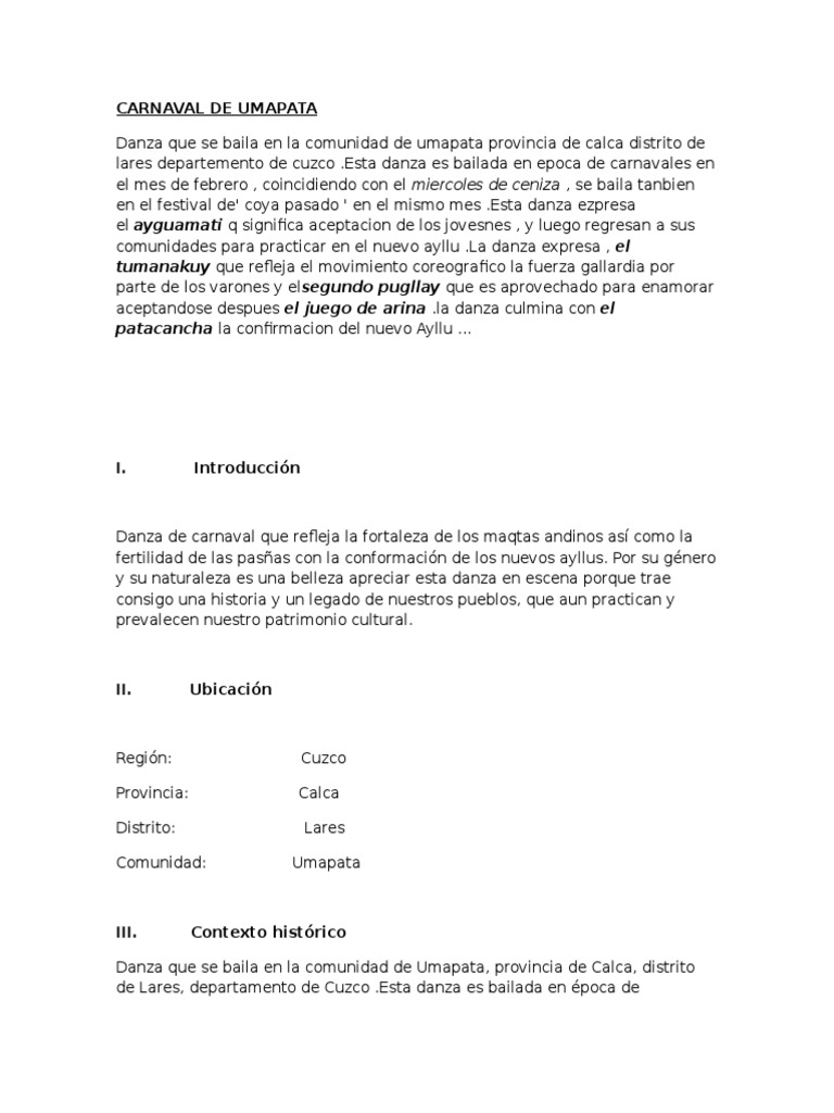 Danza que se baila en la comunidad de umapata provincia de calca distrito de