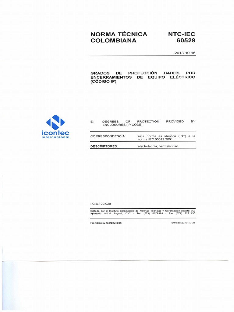DIRECCION DE NORMALIZACIONNORMA TECNICA COLOMBIANA _NTC-IEC 60529