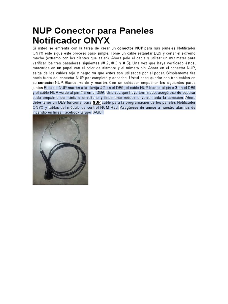 debe tener un DB9 funcional para NUP cable para la programacin de los paneles Notificador