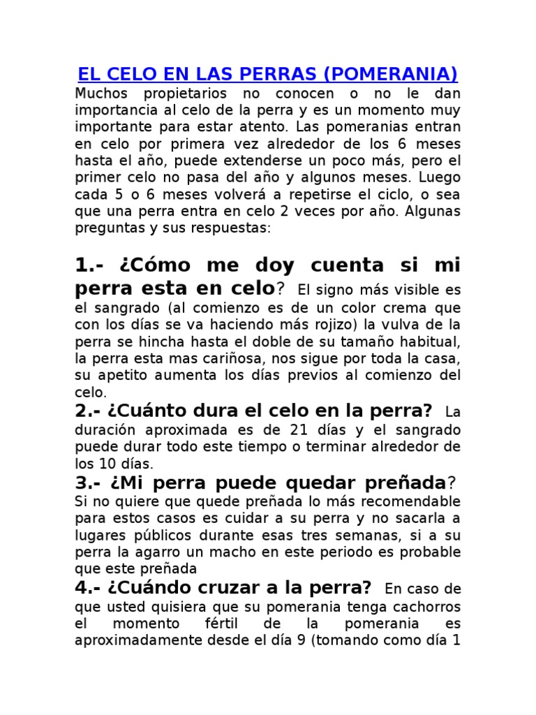 2.- Cunto dura el celo en la perra? La