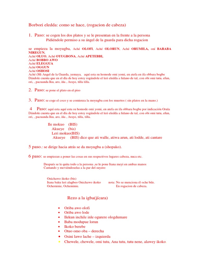 Dndole cuenta que en el da de hoy estoy rogndole el leri eledda a fulano de tal, con obi omi tutu, efun,