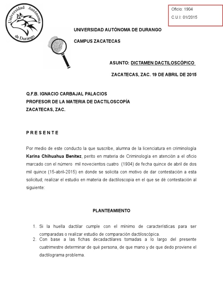 ASUNTO: DICTAMEN DACTILOSCPICO