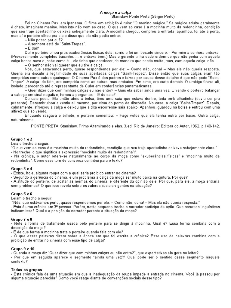 - Esta crnica fala de uma situao em que a inadequao da roupa impede a entrada no cinema. Voc j passou por