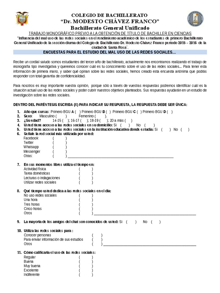 monografa tipo investigativa y queremos conocer cul es tu conocimiento sobre el uso de las redes sociales... Para tener esta