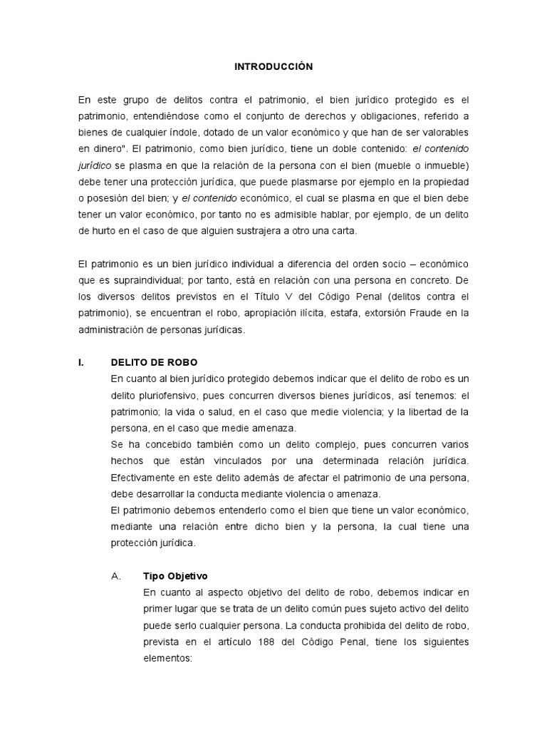 En cuanto al bien jurdico protegido debemos indicar que el delito de robo es un