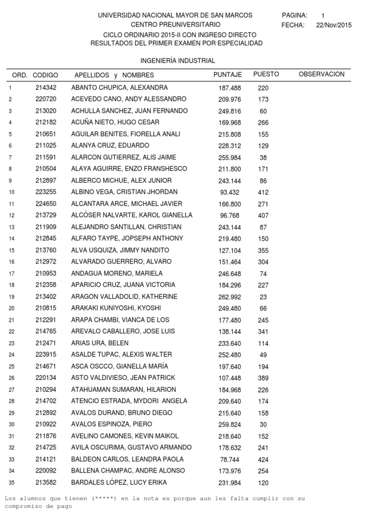 CICLO ORDINARIO 2015-II CON INGRESO DIRECTO
