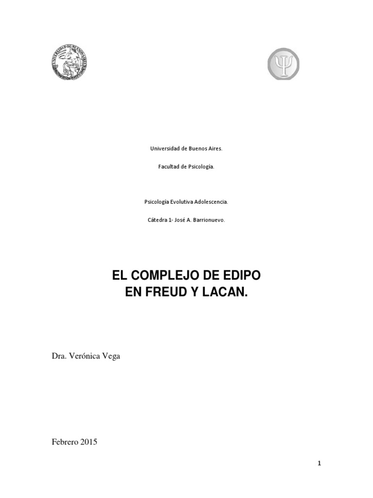 Desde los inicios del psicoanlisis, Freud recupera la tragedia Edipo Rey de
