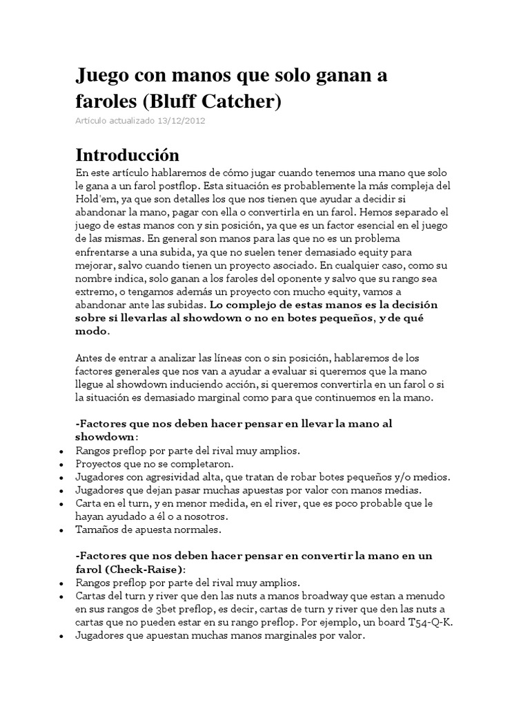 le gana a un farol postflop. Esta situacin es probablemente la ms compleja del