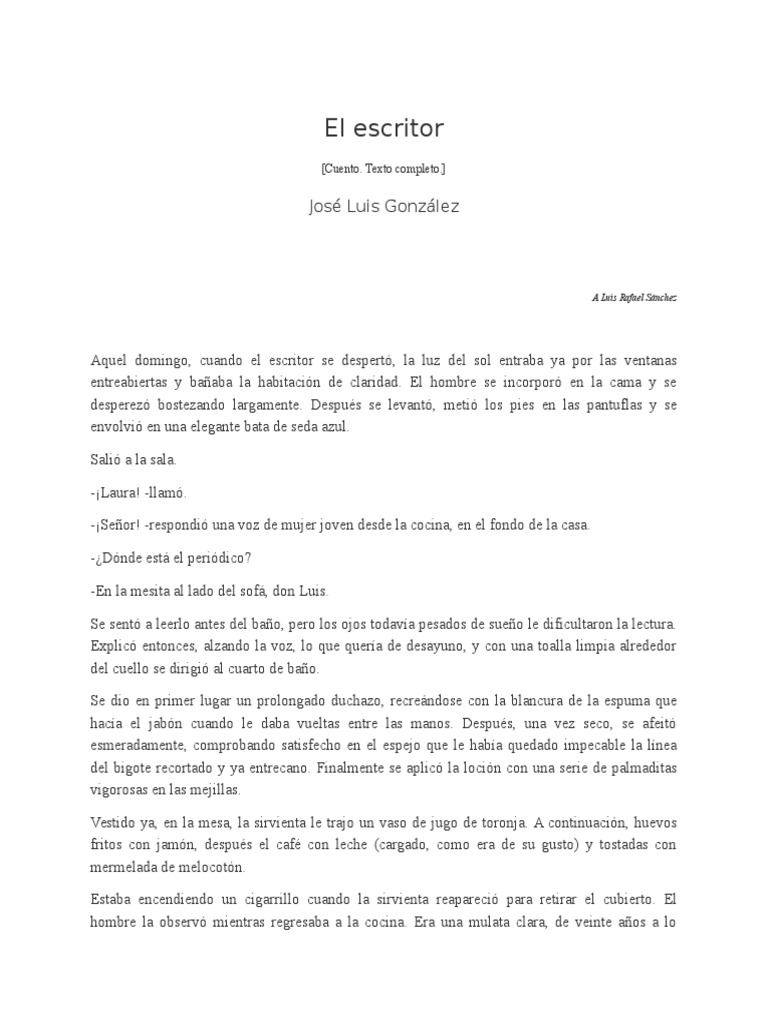 Aquel domingo, cuando el escritor se despert, la luz del sol entraba ya por las ventanas