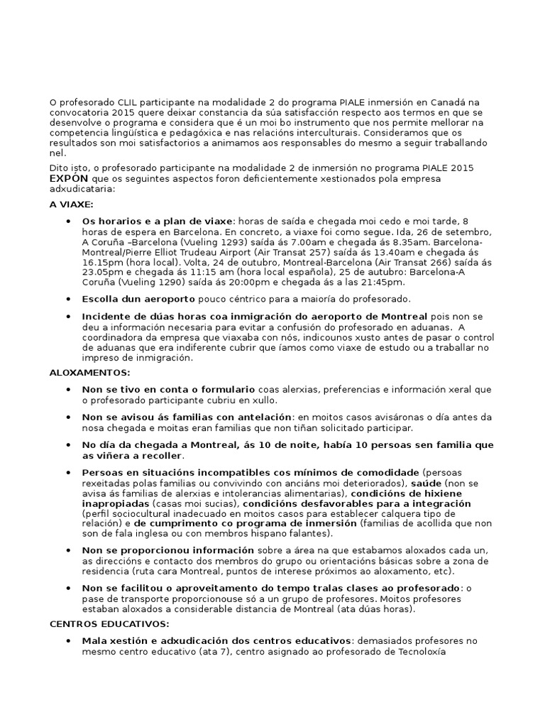 Dito isto, o profesorado participante na modalidade 2 de inmersin no programa PIALE 2015