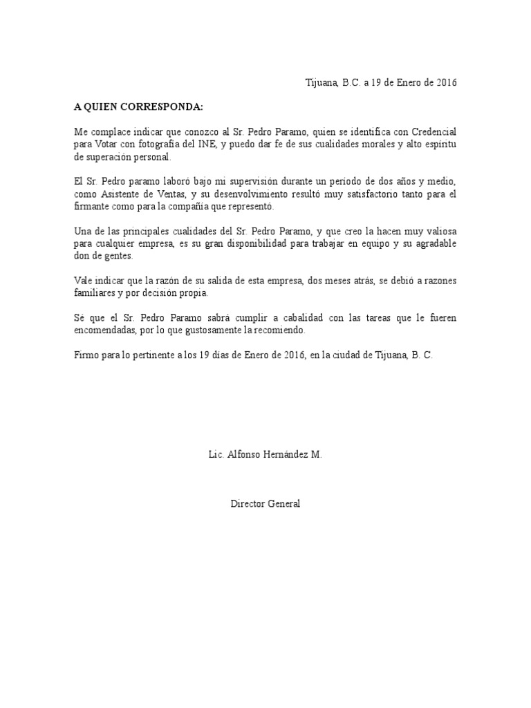 El Sr. Pedro paramo labor bajo mi supervisin durante un perodo de dos aos y medio,