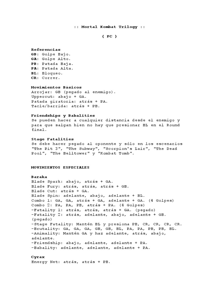 ni Friendship. Jax y Kung Lao no tienen las 2 primeras.