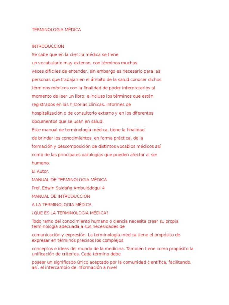 Este manual de terminologa mdica, tiene la finalidad