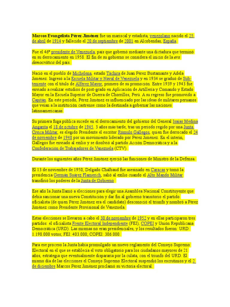 Marcos Evangelista Prez Jimnez fue un mariscal y estadista, venezolano nacido el 25