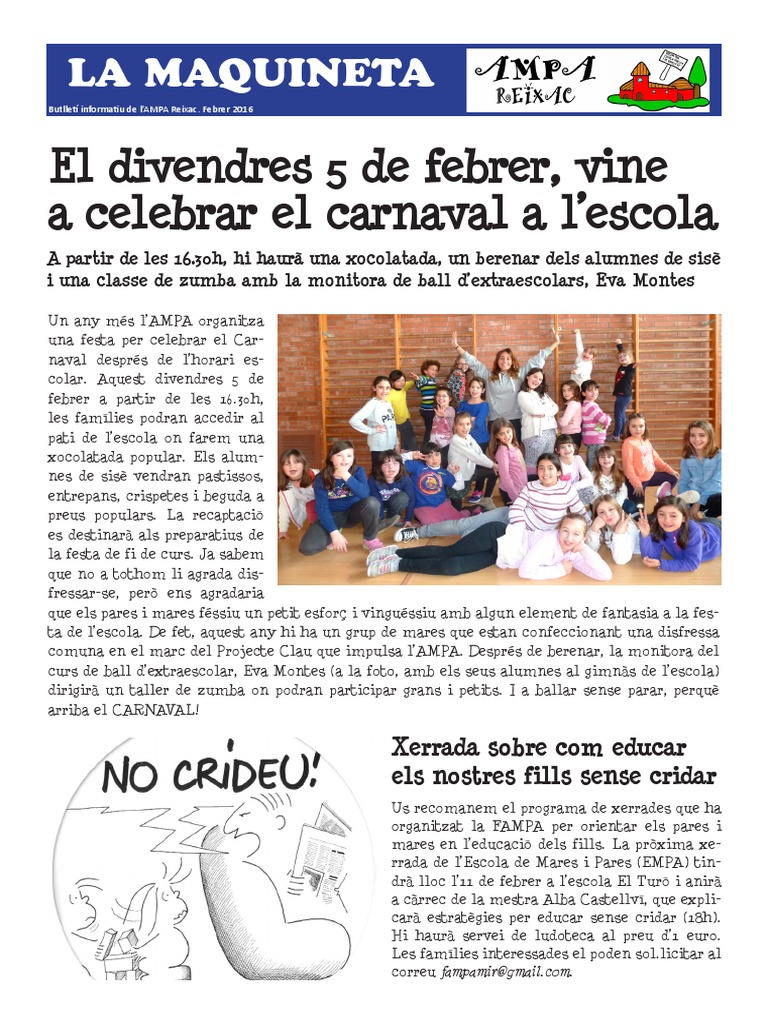 Butllet informatiu de lAMPA Reixac. Febrer 2016